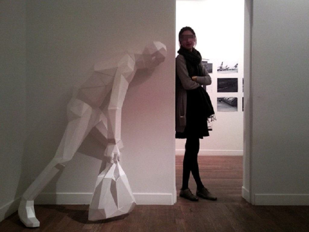 David Mesguich, Installation view of the sculpture of Palestinian worker in the exhibition at RX gallery on the lookout in the hallway, Paris, 2009. Image courtesy of the artist.