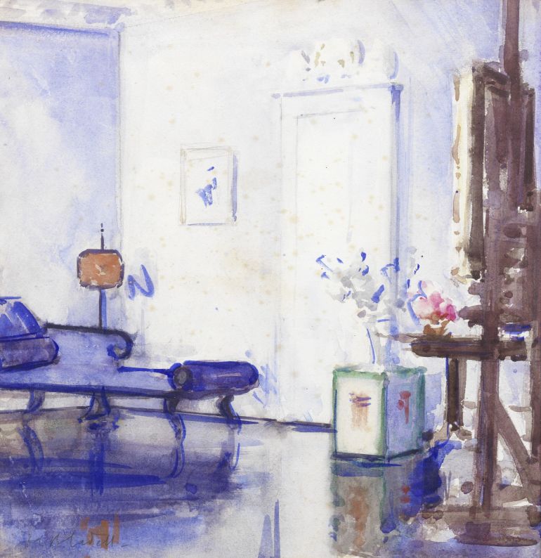 Besides Dark Roses in Pot, Still Life with Books and Statuette also by Peploe featured prominently in the Bonhams art auction. It was valued at £25,000-35,000. Also included in the Bonhams art auction is Fergusson’s townscape titled Towards Juan from Cap d’Antibes. An art collector paid £45,000 including premium ($72,361) for the piece estimated at £20,000-30,000. Samuel Cadell, a fourth member of the Colourist School presented Interior, Ainslie Place at the art sale. The fine interior estimated at £15,000-20,000 featured prominently at the art sale.
