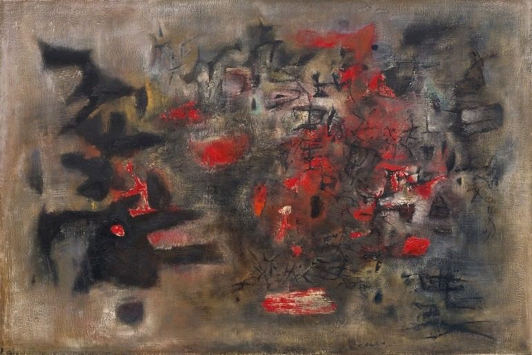 Zao Wou-Ki_Debut d’Octobre. oil on canvas, 38 3/8 by 57 5/8 in. Achieves HK$59.48 Million / US$7.63 Million. Image courtesy of Sotheby’s