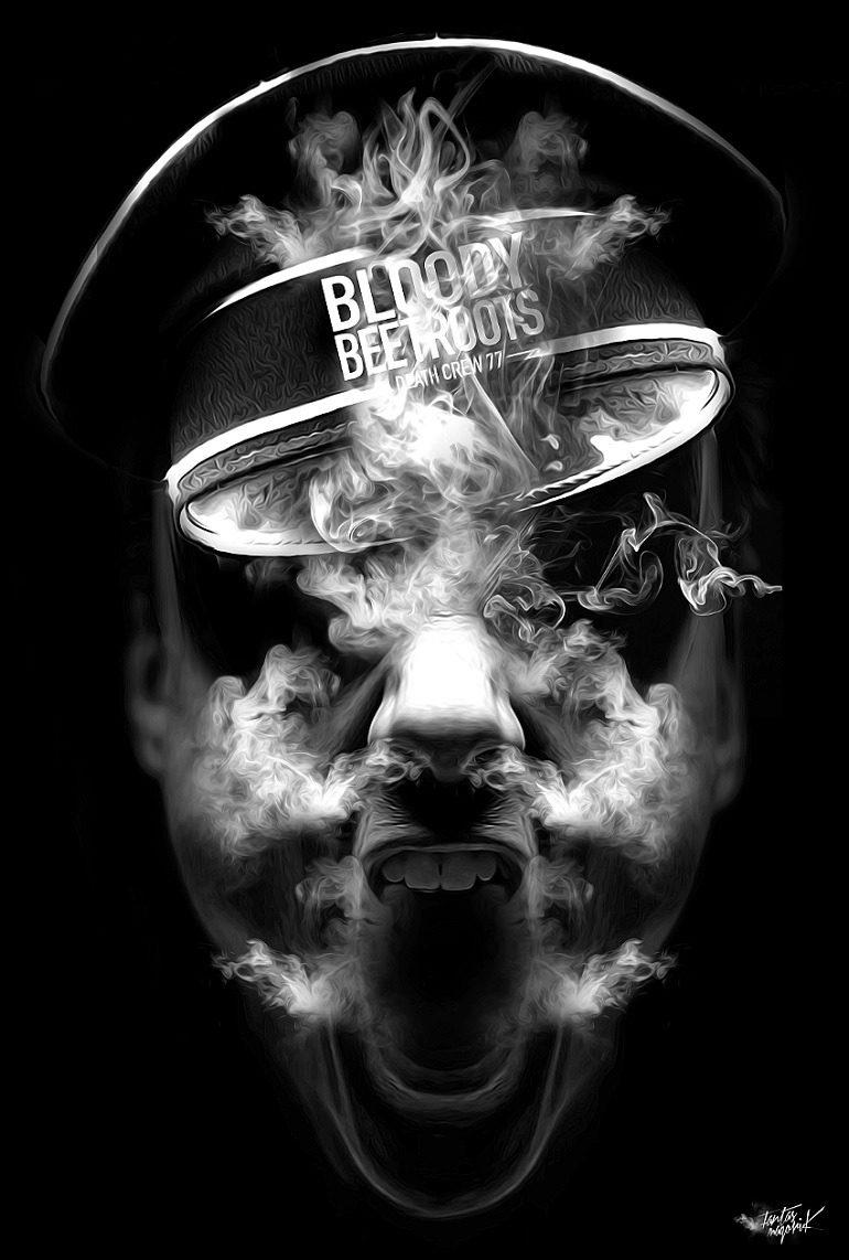 Based in Paris, France, Nicolas’s visualization of Halloween is both funny and gripping at the same time. His art and illustrations will terrify the bravest. Using familiar images like snakes, horrifying masks, skulls and other creepy figures, Nicolas, who has done many illustration jobs, captured the images of Halloween in a way that will scare many. In one image, smoke bellowed from the eyes, mouth, and ears of a man wearing a hat. In another, snakes project form a gory mask-like monster, fulfilling the fantasy and folklore of all Halloweens. Each digital art poster has “Happy Halloween” written in white.
