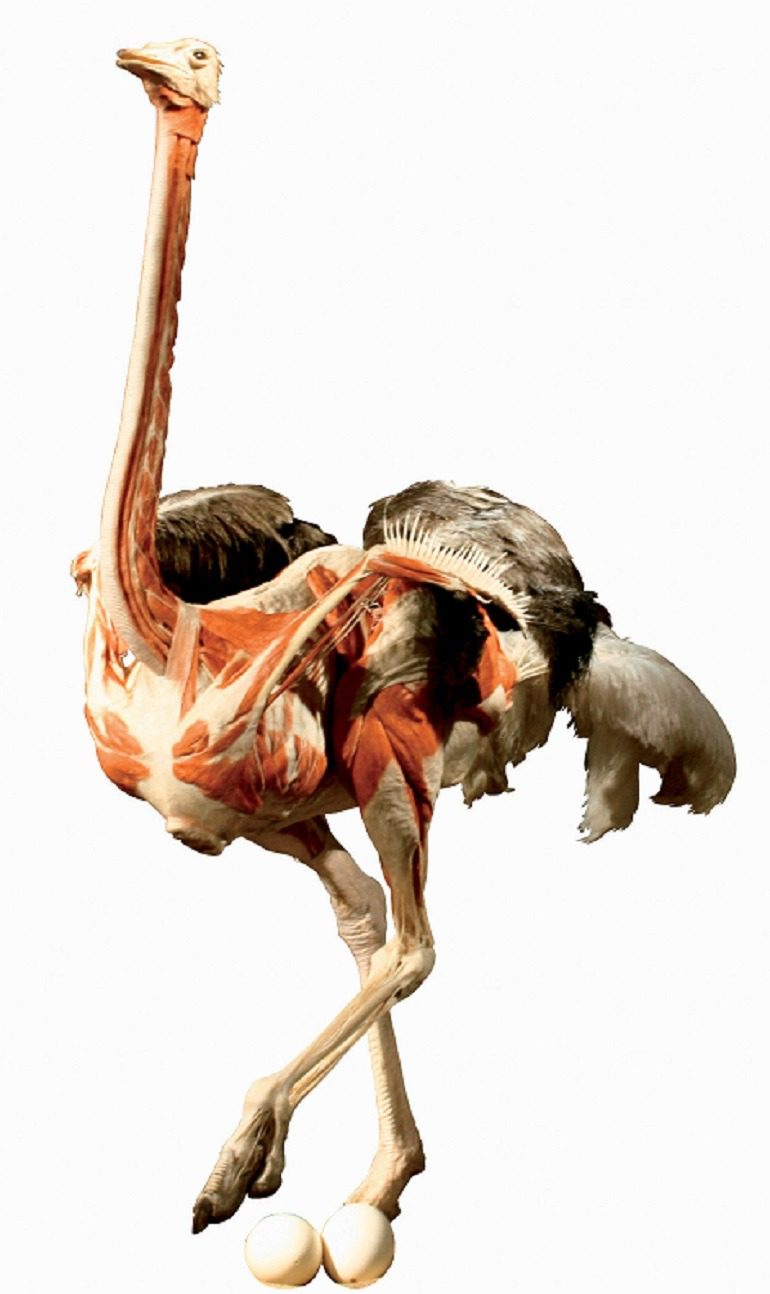 Ostrich Inside Out: Plastinated Ostrich at the Franklin Institute in Philadelphia. Image courtesy of BWs