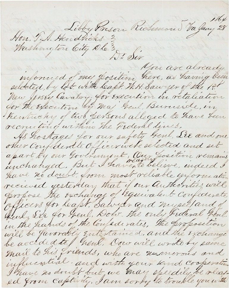 Abraham Lincoln: President Arranges P.O.W. Exchange for Condemned Libby Prison Inmates Involving Robert E. Lee’s Son. Image courtesy of Heritage Auctions