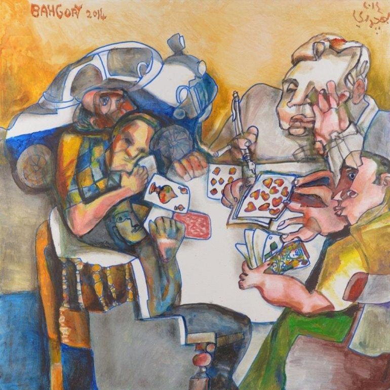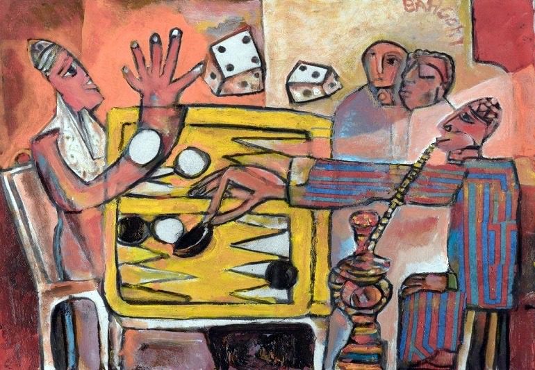 George Bahgory, Backgammon II, Oil on Canvas 73 x 92 cm 2014. Image courtesy of Al Masar Gallery for Contemporary Art