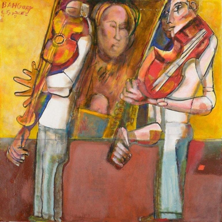George Bahgory, The Two Violinists Oil on Canvas 100 x 100 cm 2014. Image courtesy of Al Masar Gallery for Contemporary Art