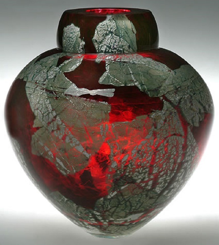 Loy Allen’s glass art is captivating. The artist combines elements from nature to achieve high aesthetics. Flowers, insects, bugs, and reptiles are major sources of inspiration for Allen. Viewed before light, the objects glow, giving life and movement to these static art objects. Some of Allen’s objects are for decorative purposes, while others are utilitarian. Her bottle designs are hidden within beautiful flowers to hide their functional value. Her stylistic approach is akin to Art Nouveau. Like artists of that era, Allen is inspired by natural forms and structures. The flowers, plants, and curved lines inherent in her designs are reflective of her connection to nature.