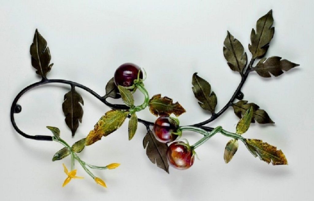 Loy Allen, Glass, and metal Tomato sculpture, glass art. Image courtesy of American Craft Council Show