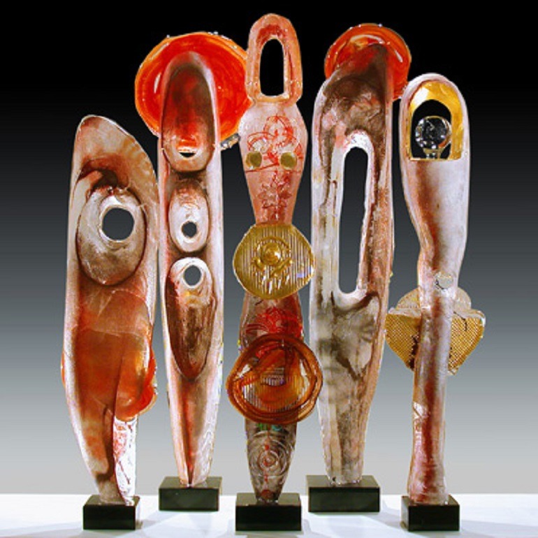 Susan Gott’s totemic glass sculptures show her brilliance and experience in glass art. Her works are inspired by mythological imagery, symbolism, and philosophies from historic and ancient cultures. Gott’s glass sculptures are outstanding in the true sense of the word. They reveal the experience of her travels and love of ancient civilizations, symbols of ritual art, and myths.