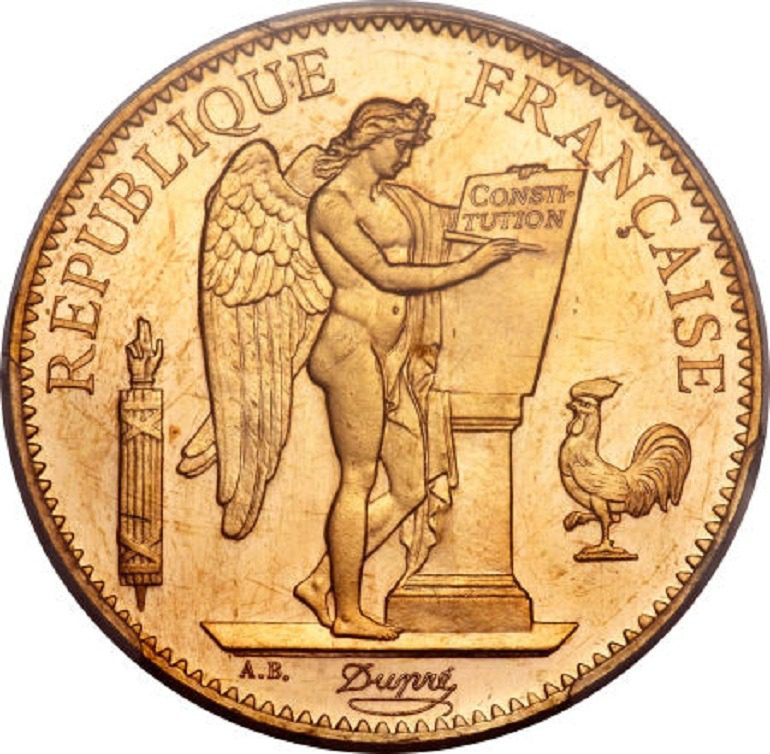 France: Republic gold 100 Francs 1894-A MS64 PCGS. Sold for $82,500 Image courtesy of Heritage Auctions