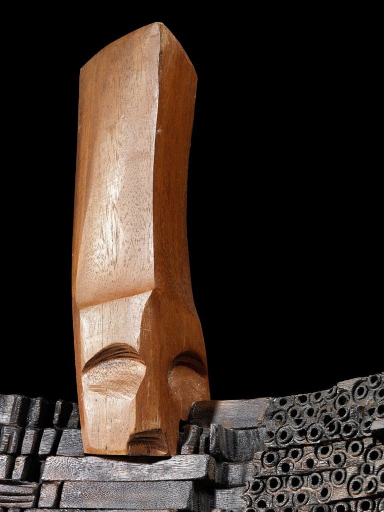 El Anatsui, Al Haji, carved and incised wood 184 x 80 x 28cm (72 7/16 x 31 1/2 x 11in). Image courtesy of Bonhams