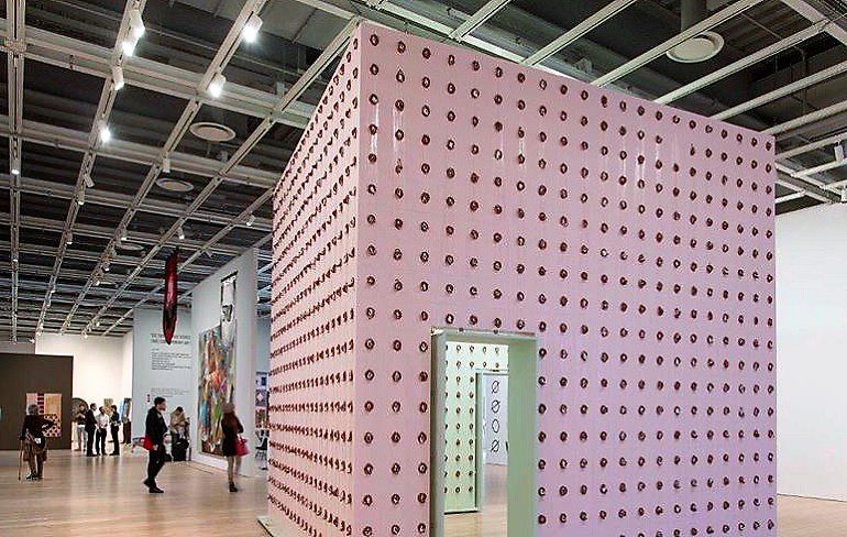 Based in Chicago, Pope. L is well known for his performance art, videos, paintings, and interventionist public art. His entry for the 2017 Whitney Biennial was thought provoking. Titled Claim (Whitney Version), 2017, the installation included 2,755 slices of bologna. Although fresh when the piece was installed, the bologna became a smelly mess over the course of the show. They cured and leaked juice into the basins below the piece.