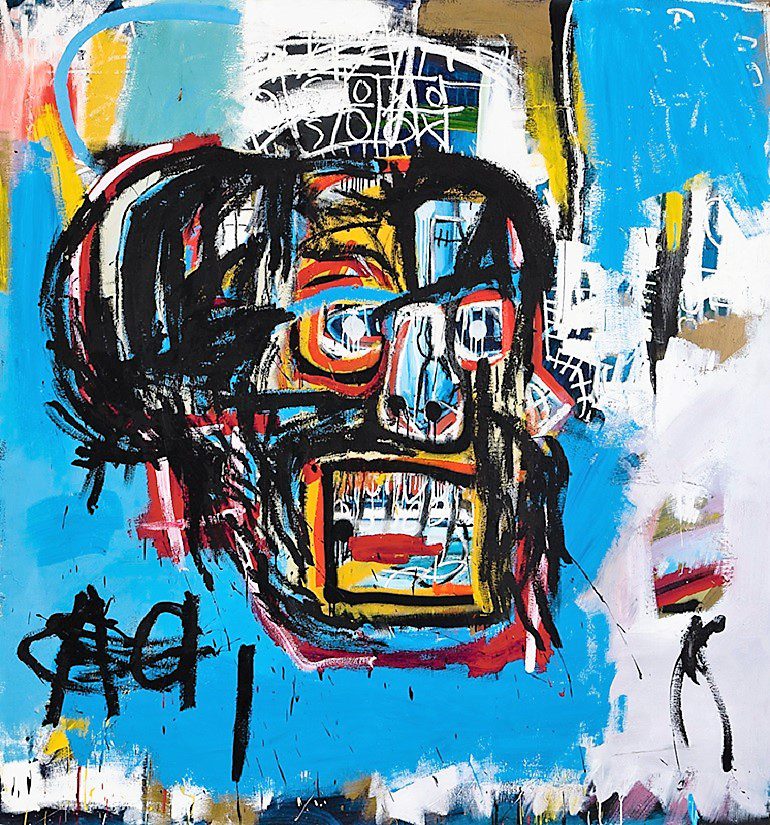 Jean-Michel Basquiat, Untitled 1982. Acrylic, spray paint and oil stick on canvas painting, 72 1/8 by 68 1/8 in. Sold for $110.5 million at Sotheby’s