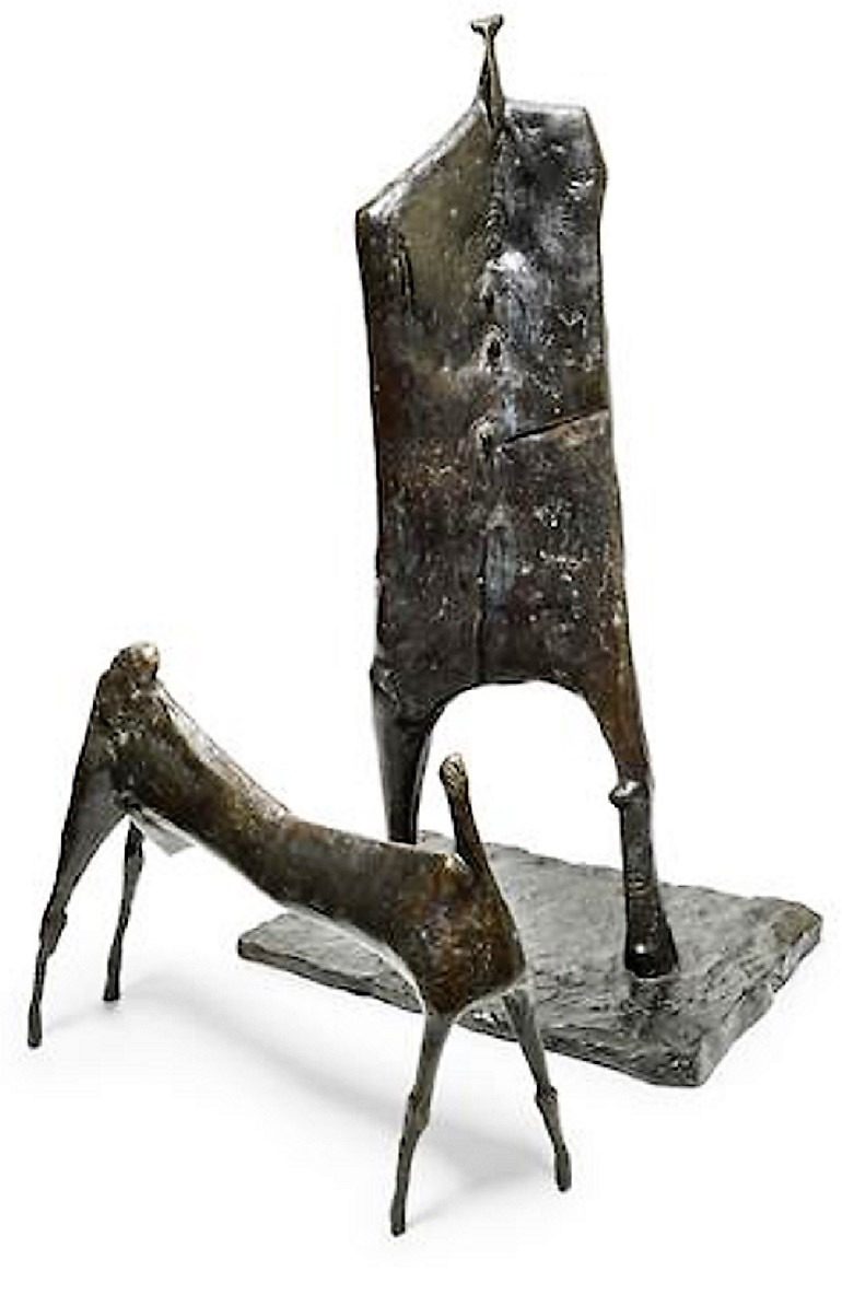 Ezrom Kgobokanyo Sebata Legae, Shepherd 1991. Bronze: Shepherd measures 112 x 60.2 x 40.5 cm; goat measures 50.8 x 62 x 18cm. Image: Bonhams