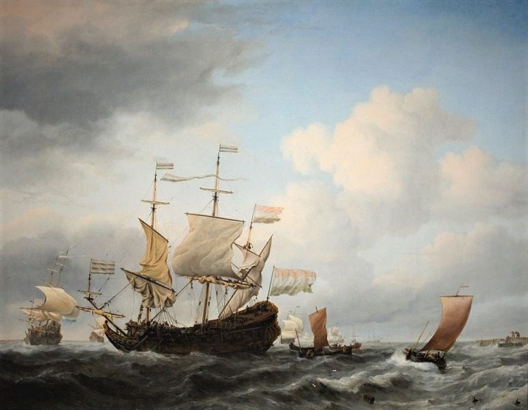 Willem van de Velde the Younger, A Dutch Flagship Coming to Anchor (around 1672). Oil on canvas. Susan and Matthew Weatherbie Collection. Image: Museum of Fine Arts, Boston