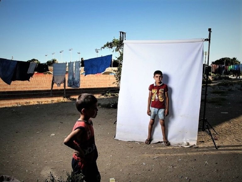 Storytelling is at the core of Amir’s new photography project about Syrian civil war children. Borrowing from 100 years of Iranian photography history of ‘aka-bashi’, he created a series of authentic images of Syrian civil war children devoid of the usual media sensation. Working with the children, they created an outdoor studio using a white canvas as the backdrop. The war children posed in front of the white canvas and the camera went click, click.