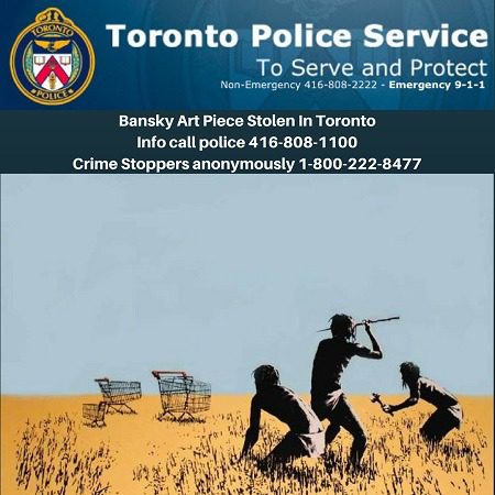 TORONTO, CANADA- Who stole a $45,000 Banksy print from an exhibit in Canada? That is the question the Toronto police is trying to answer as they launch an investigation into the brazing art theft. The heist happened just before the controversial exhibition opened at the retrofitted brick loft space on 213 Sterling Road.