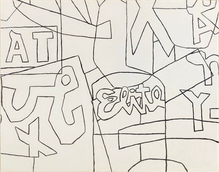 Stuart Davis, Letter and His Ecol. (Black and White Version), 1962. Casein on canvas, 24 x 30 inches, 61 x 76.2 cm. Image: Paul Kasmin Gallery. © Estate of Stuart Davis