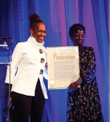 First Lady New York City Chirlane McCray with Thelma Golden, Director and Chief Curator of The Studio Museum receiving the Mayoral Proclamation to commemorate the Museum’s historic fifty-year legacy. Photo: Liz Ligon