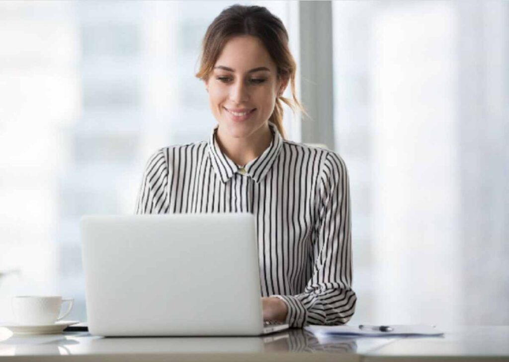 The lady on the laptop is a reminder that selling prints of your artwork online involves using social media platforms.