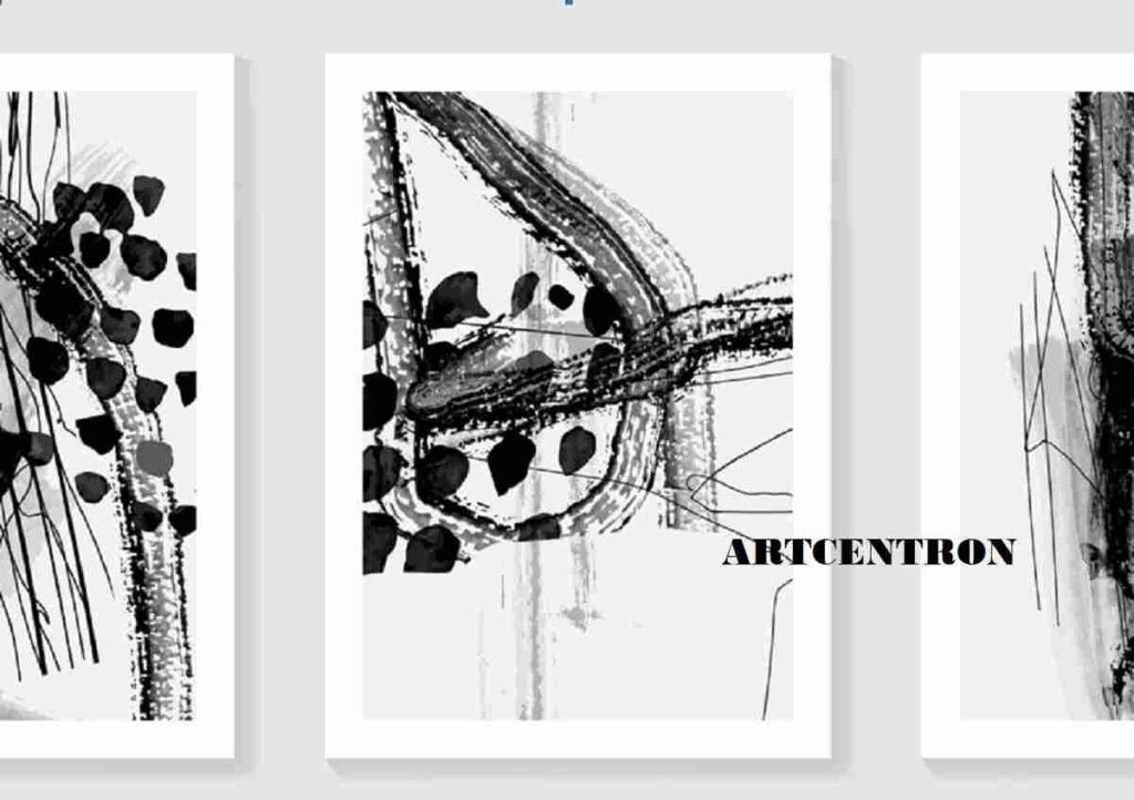 Three abstract paintings done using black color schemes. The paintings exemplify the color theories behind the color black in art.