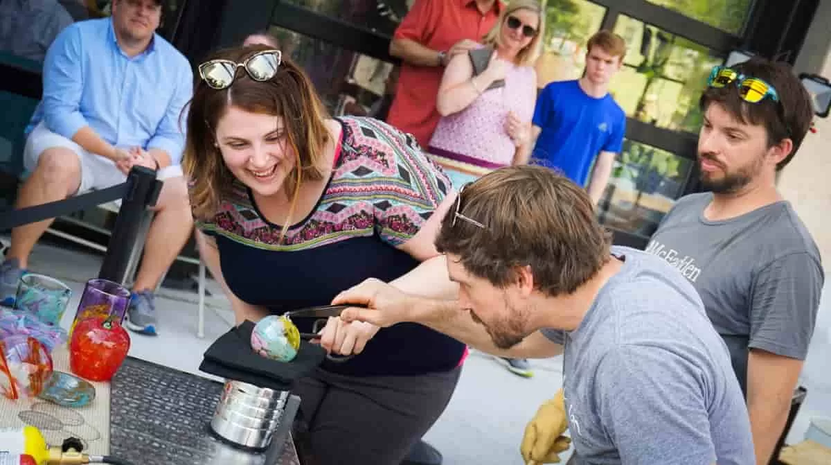 Excitement at the McFadden Art Glass blowing group event. Photo: McFadden Art Glass