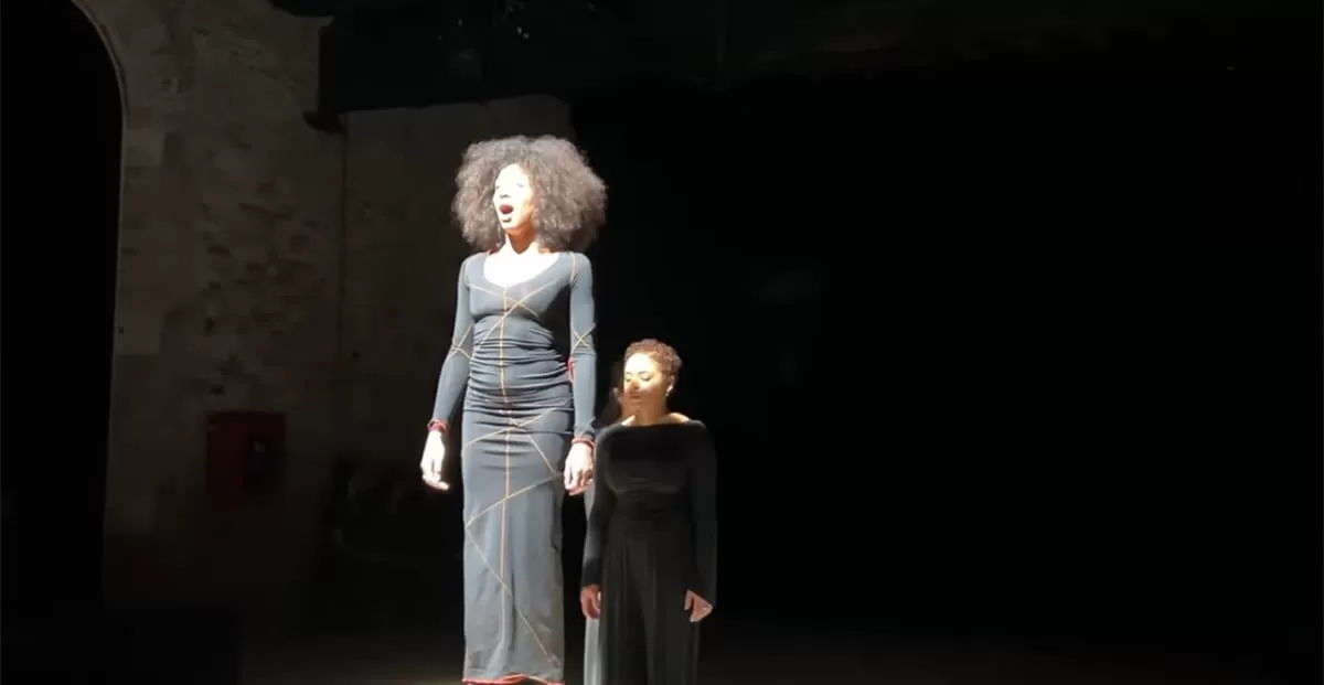 Gabrielle Goliath on stage performing Elegy. The South Africa Venice Biennale pavilion cancellation followed a dispute over a proposed artwork acquisition and claims of political interference.